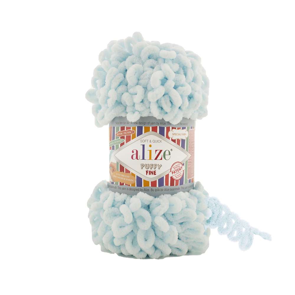 Alize Puffy Fine yünü hem el örgüsü yapımında hem de örgü makinelerinde kullanabilirsiniz. Özellikle şiş ve tığ kullanmaya ihtiyaç duymadan parmaklarınızla örebilirsiniz.