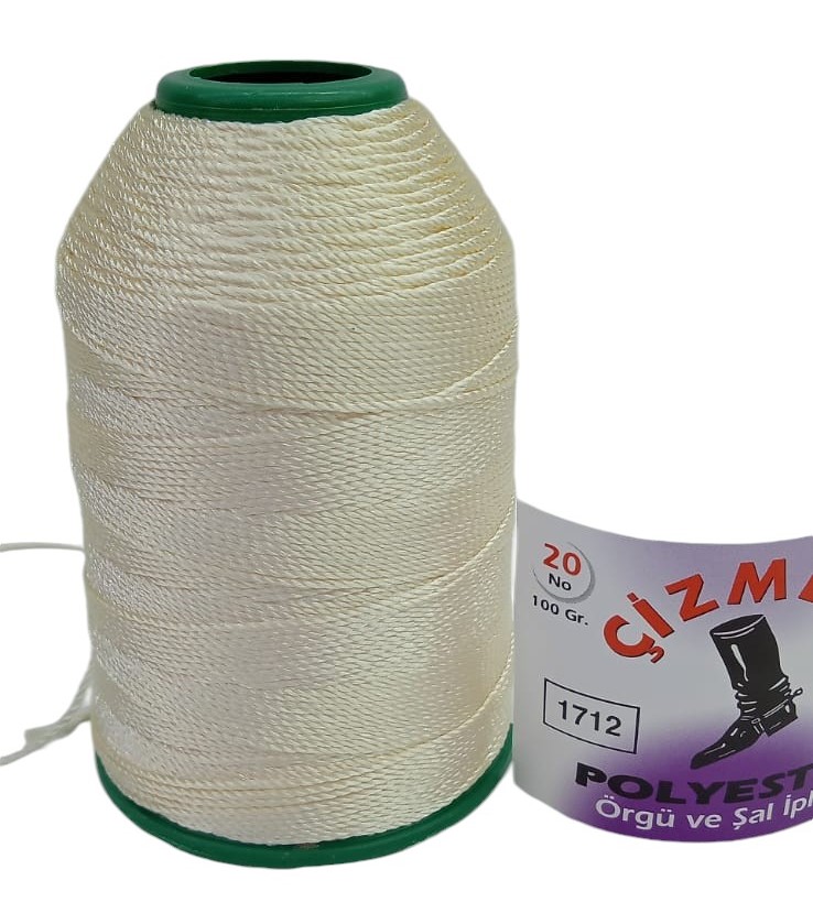 - Çizmeli No.20 1712 Krem Polyester Örgü ve Şal İpliği 100gr.