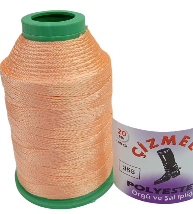 Çizmeli Örgü ve Şal İpliği, kalınlığı no 20 olan ve 100 gram ağırlığında olan bir üründür. %100 Polyesterden üretilmiştir ve açık yavruağzı rengindedir.