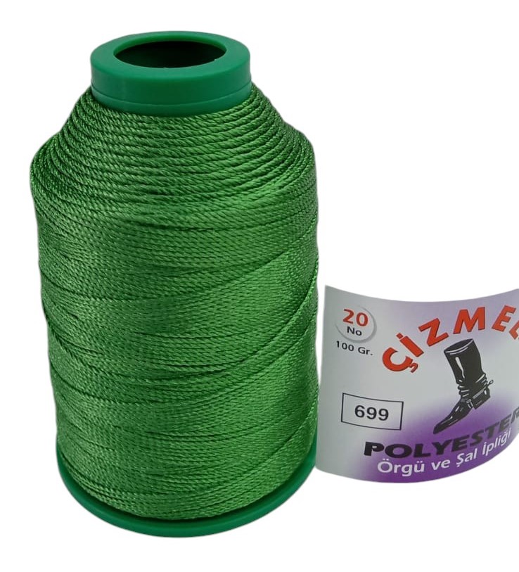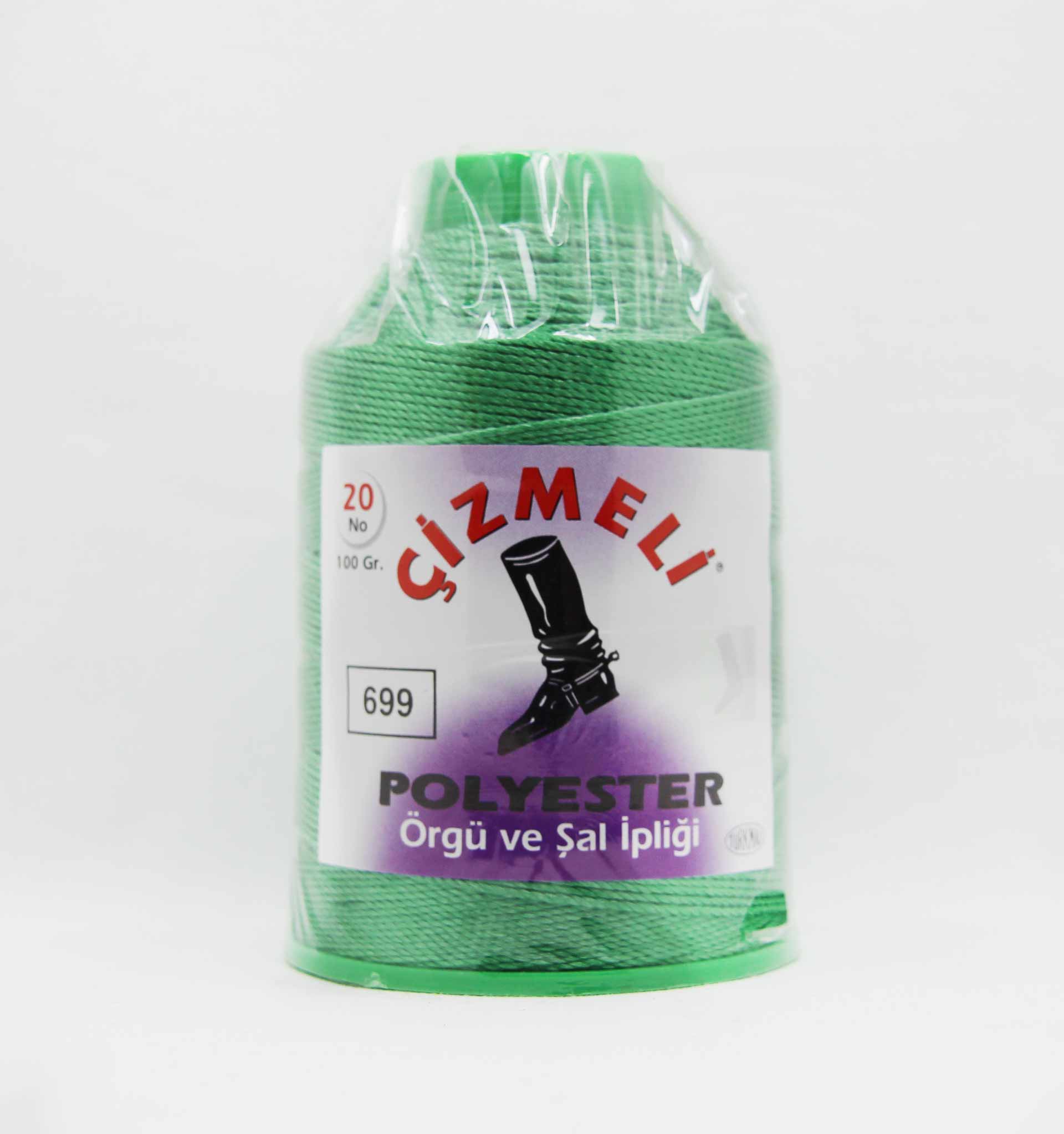 Çizmeli örgü ve şal ipliği, yüzde yüz polyester malzemeden üretilmiştir. Dayanıklı ve uzun ömürlü bir ürün olan bu iplik, no.20 kalınlığında ve 100 gram ağırlığındadır.