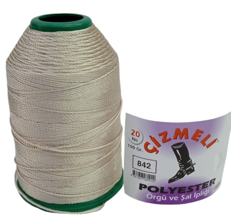 Çizmeli No.20 842 Açık Camel Polyester İpliği, no 20 kalınlığı sayesinde detaylı işçilik gerektiren projelerde mükemmel sonuçlar sunar. Dantel, oya ve nakış gibi çalışmalarınızda bu iplik, hem kullanım kolaylığı sağlar hem de projelerinizi estetik açıdan zenginleştirir. Açık camel rengi, özellikle yaz aylarında yapılan projelerde ferah ve hafif bir atmosfer oluşturur.