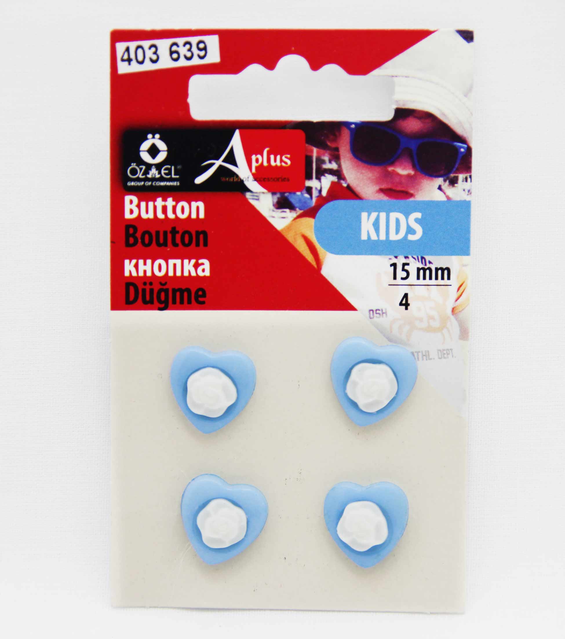 4 Adet Mavi Kalpli Çiçekli Bebe Düğmesi
