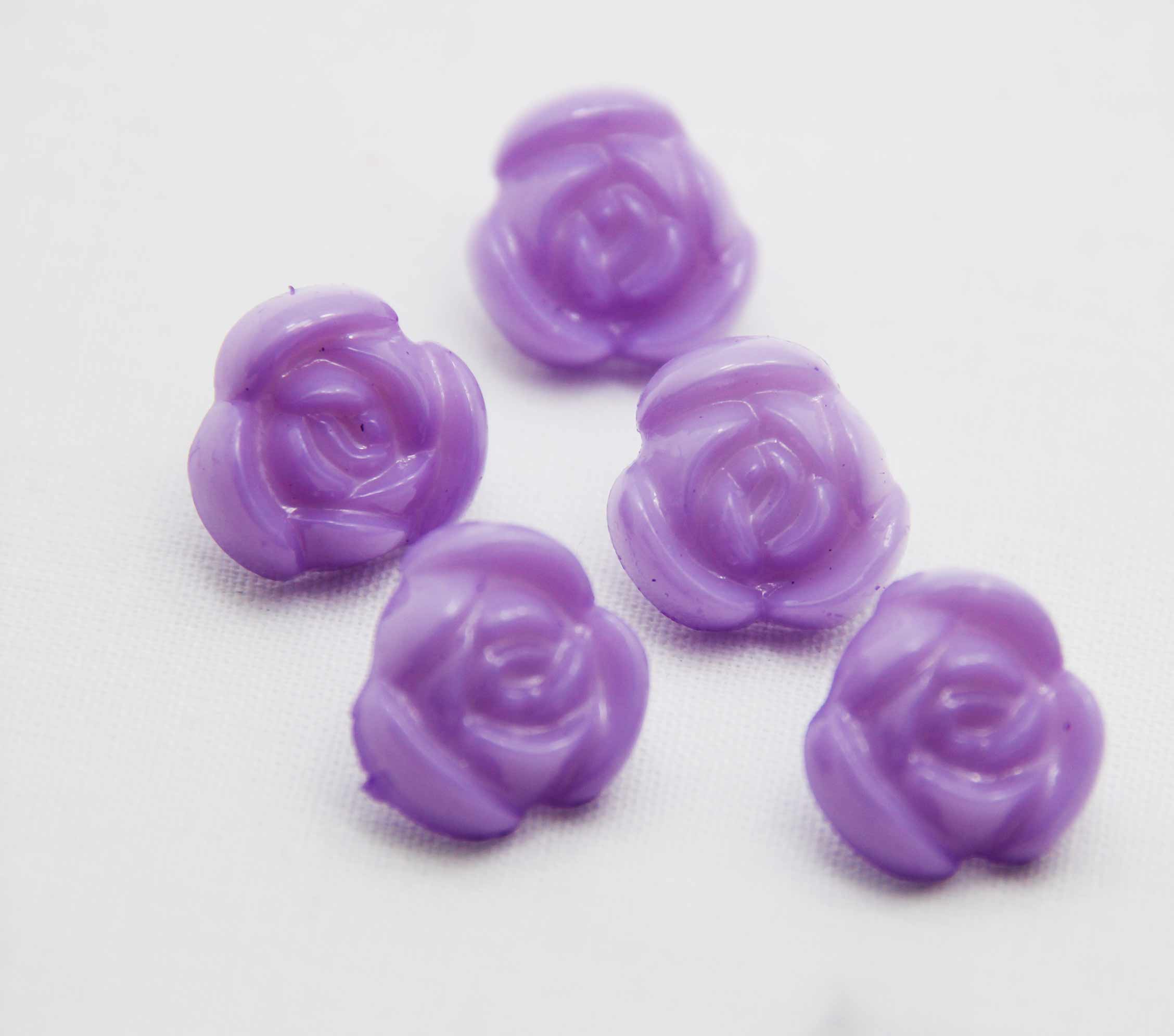 Bu mor gül şekilli düğmeler, birçok farklı tasarımınıza uyacak standart bir büyüklüğe sahiptir. Her bir düğme yaklaşık olarak 1 cm çapındadır, bu nedenle çoğu örgü tasarımlarına kolaylıkla uygulanabilirler.