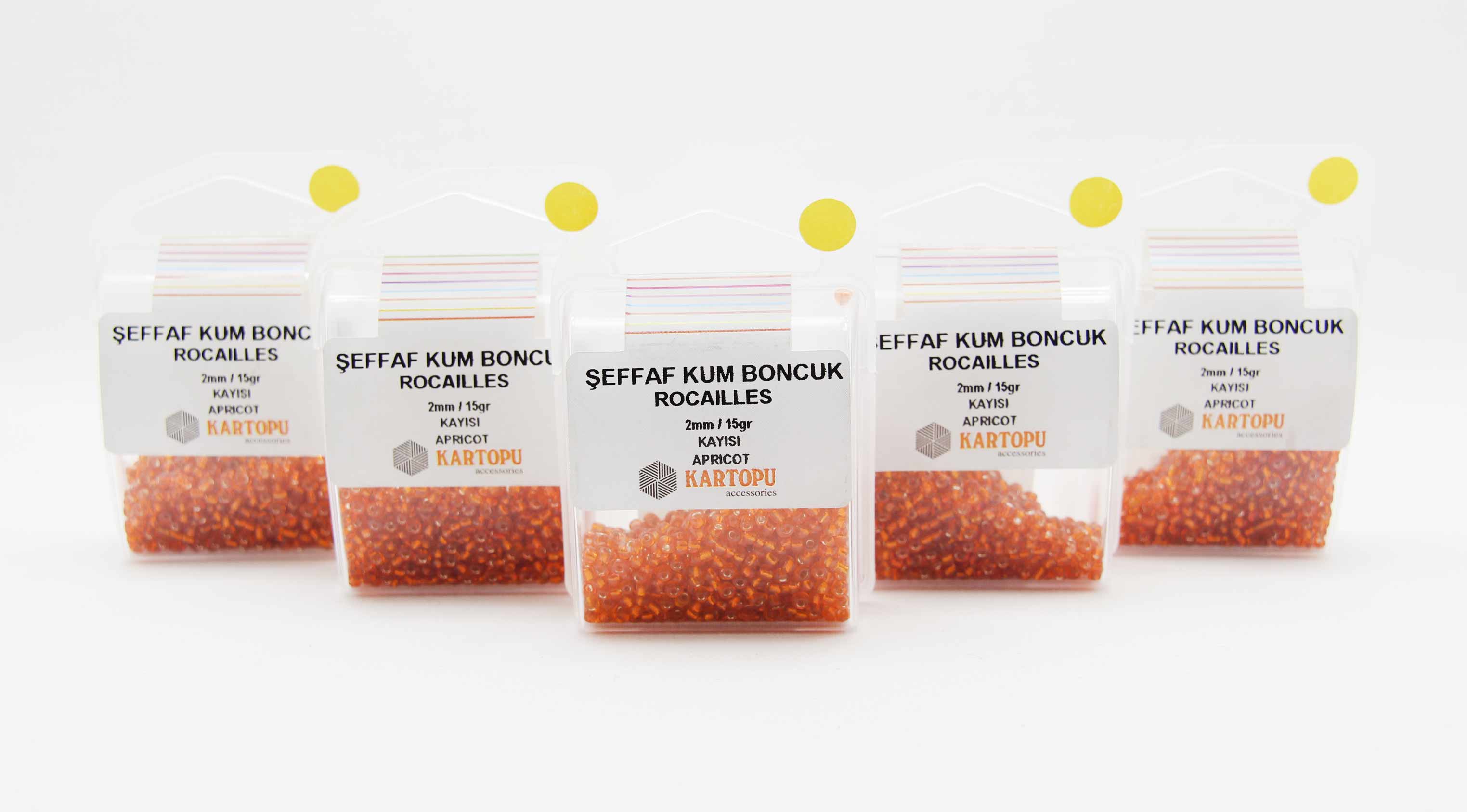 5 Adet 15 Gram 2 Mm Kayısı Şeffaf Kum Boncuk