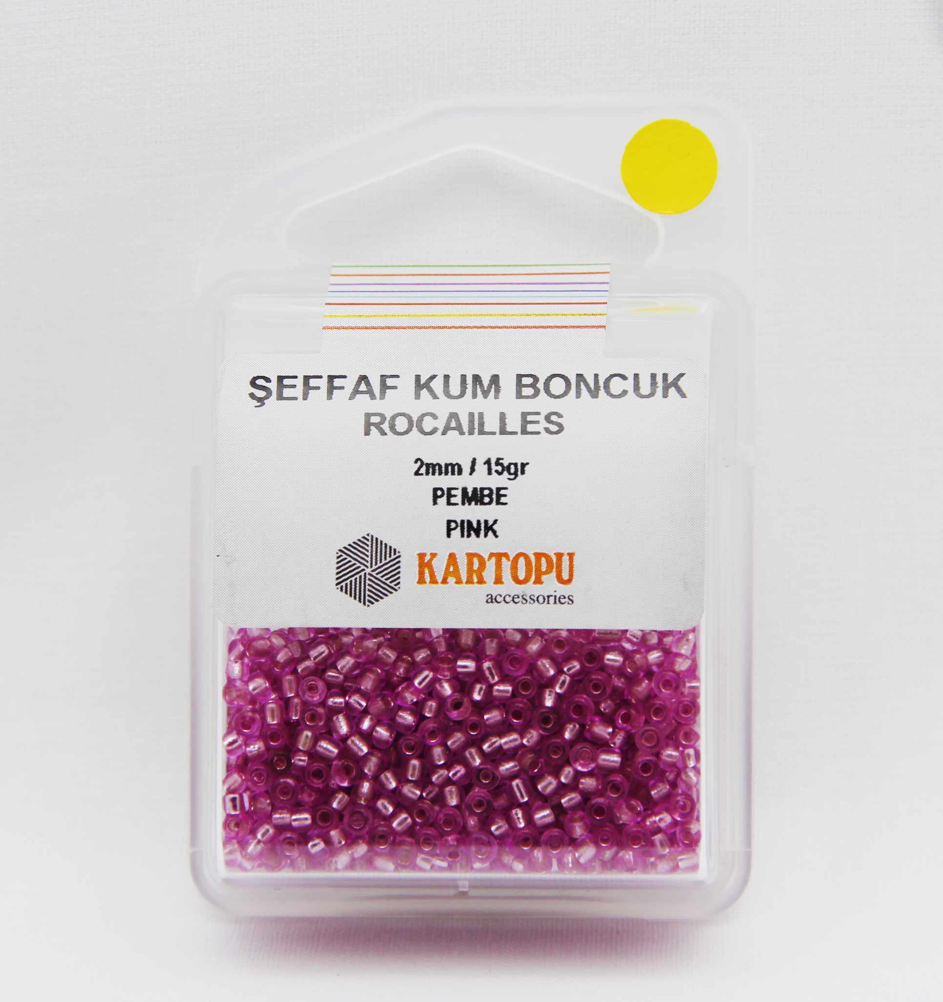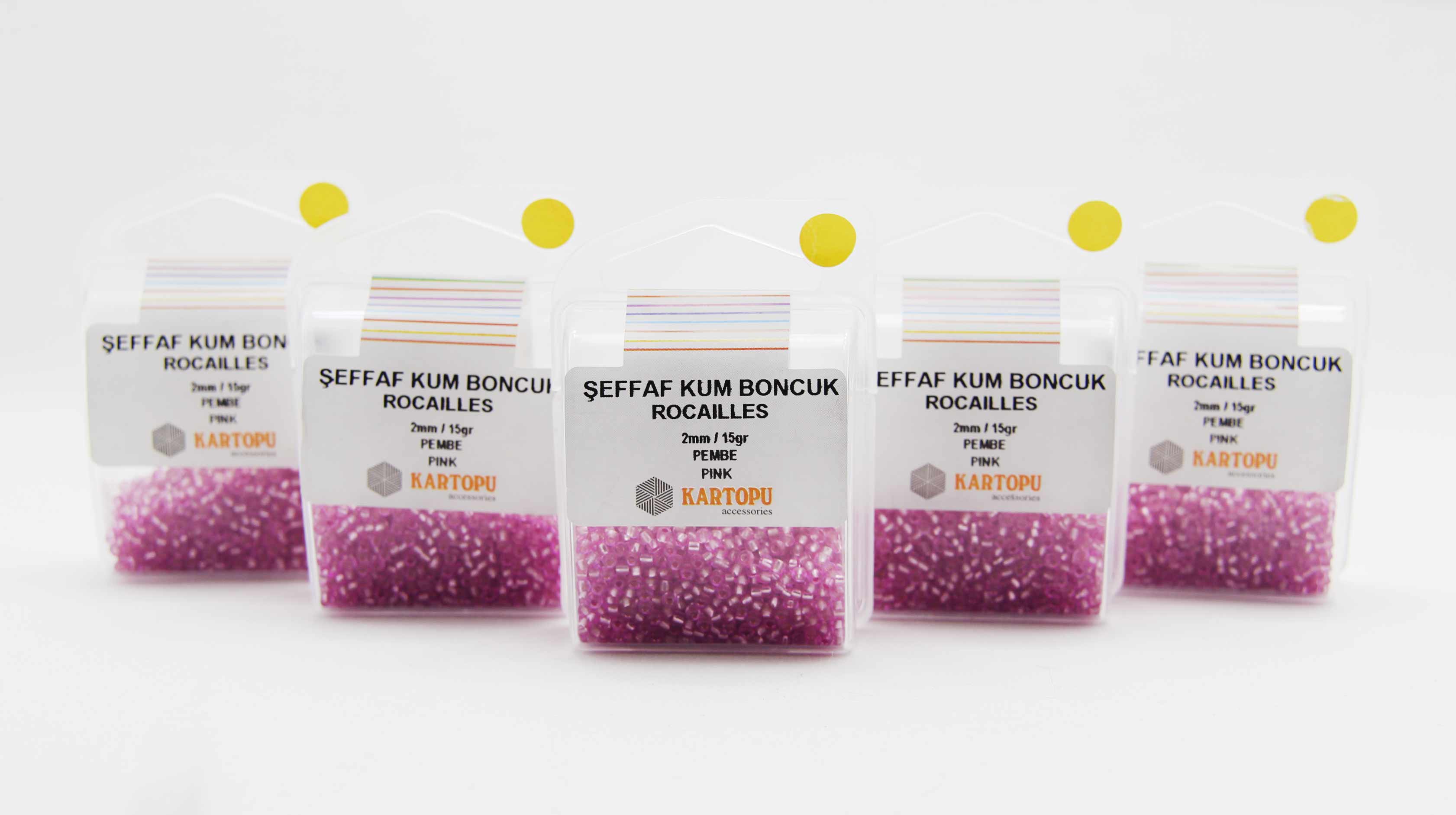 5 Adet 15gr. 2mm Pembe Şeffaf Kum Boncuk, el işi ve takı yapımı gibi çeşitli hobi projeleri için ideal bir malzemedir. Küçük boyutları ve pembe renk tonuyla dikkat çeker.