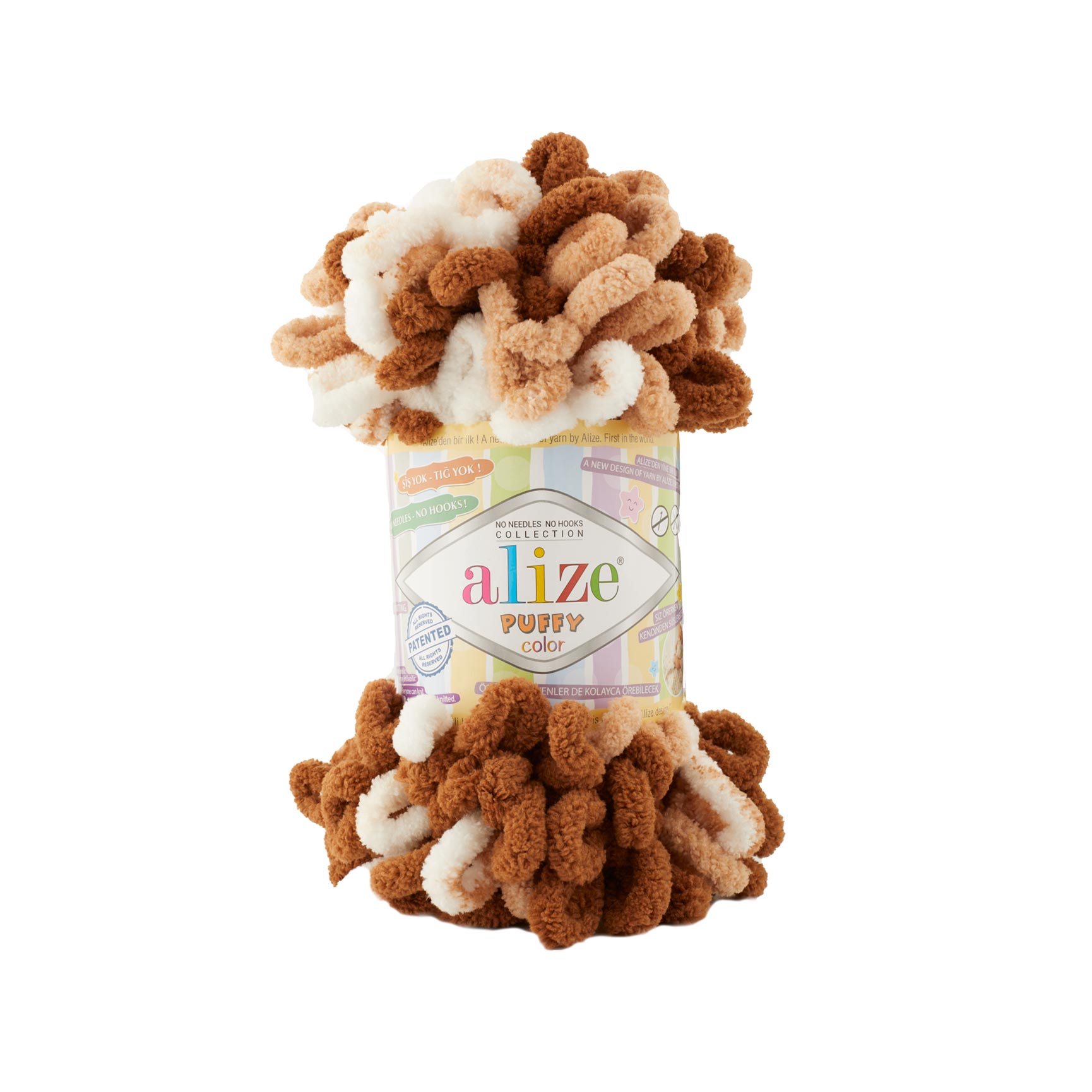 Alize Puffy Color 6398 örgü ipliğinin kullanımında özel bir şiş ya da tığa ihtiyaç yoktur.