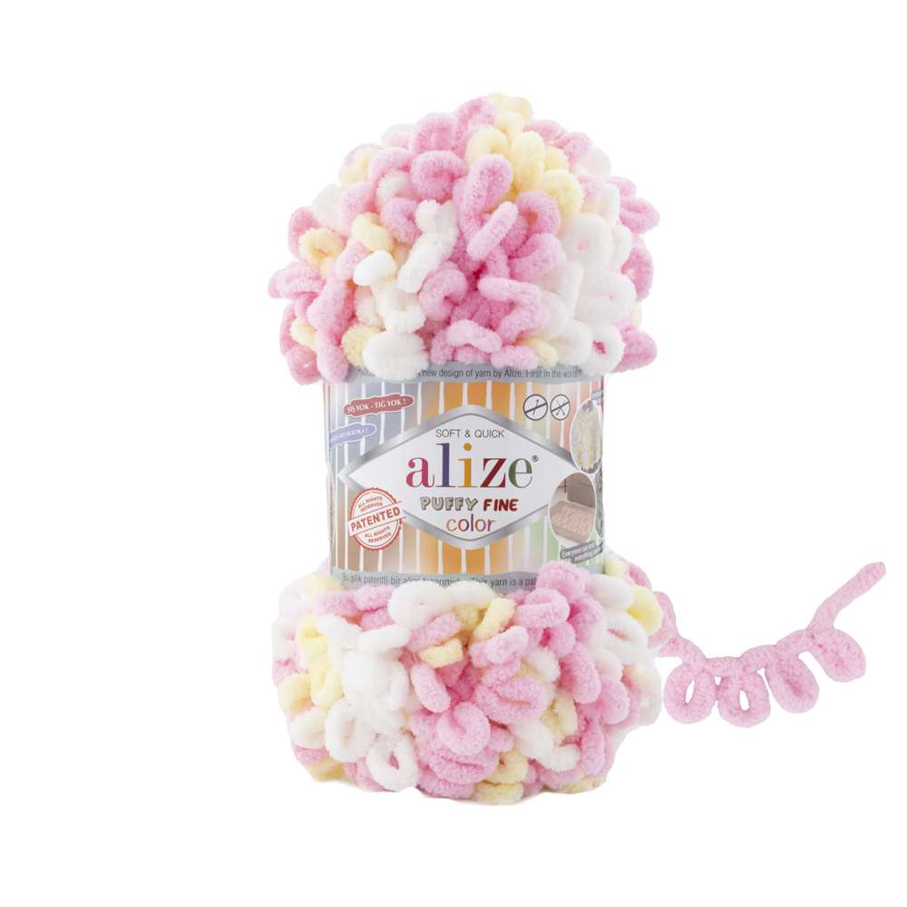 Alize Puffy Fine Color, 100 gram ağırlığında ve 14.5 metre uzunluğunda ipliğe sahiptir.