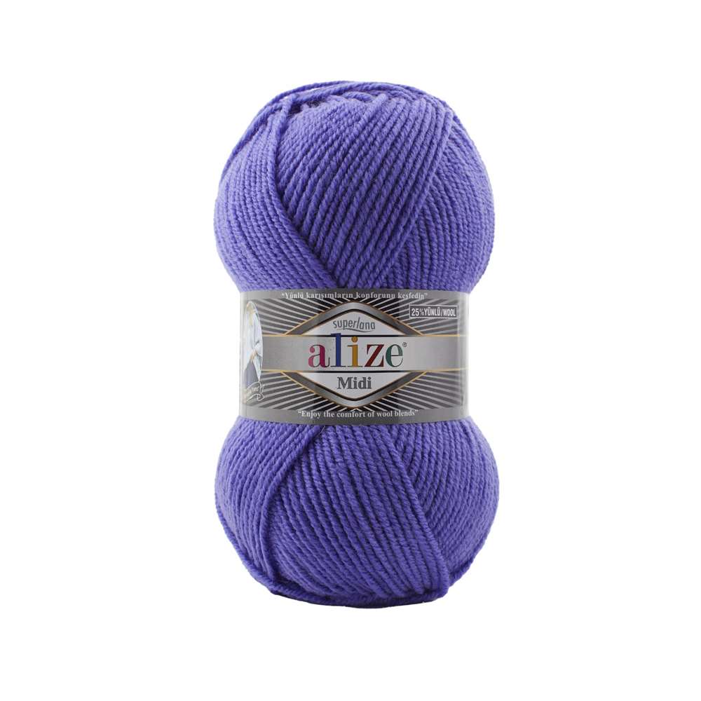 Alize Süperlana Midi 851 Pervane Çiçeği, göz alıcı ve canlı mor tonlarıyla dikkat çeken yüksek kaliteli bir el örgü ipliğidir. %25 yün ve %75 akrilik karışımı, sıcak ve dayanıklı örgüler yapmanıza olanak tanır. Sonbahar ve kış mevsimlerinde ideal olan bu iplik, projelerinize hem estetik hem de konfor katar.