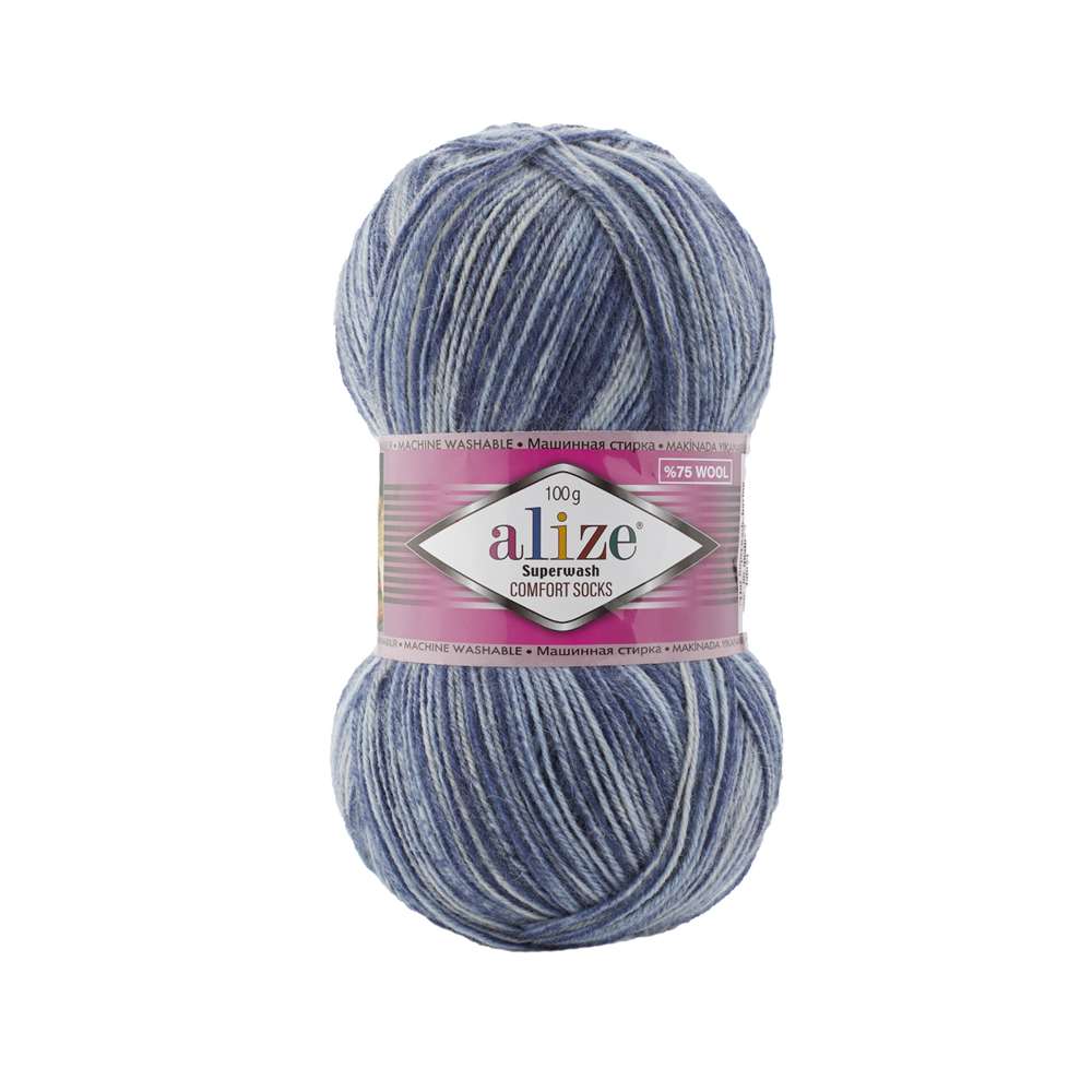Alize Superwash 7677 *Ürün İçerikleri: %75 Yün % 25 Polymaid *Gramaj: 100 gr *Metraj: 420 m *Mevsim: Sonbahar/Kış * Şiş No : 2-4 * Tığ No : 1-3 *Kullanım Alanları: Çorap. patik. çetik. atkı. bere ve diğer aksesuar malzemeleri *Uyarı: Ekranda gözüken renkler ile gerçek iplik rengi farklılık gösterebilir.