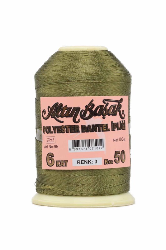 Altınbaşak 50 No: 3 100 Gram Polyester Dantel İpliği, renkli ve dayanıklı bir ipliktir. Dantel, oya ve nakış işlerinizde tercih edebileceğiniz bu iplik, işlerinize estetik bir güzellik katar.