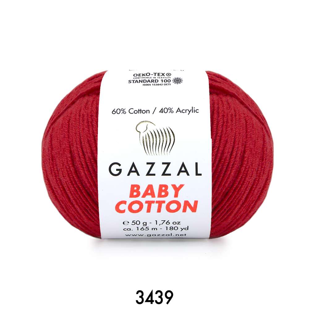 Gazzal Baby Cotton 3439, %60 pamuk ve %40 akrilikten oluşmaktadır. Bu karışım, ürünün dayanıklılığını ve kullanım esnasındaki konforunu arttırır.