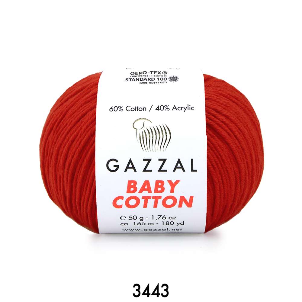 Özellikle bebek giysileri yapımı için önerilen Gazzal Baby Cotton 3443, kırmızı renk tonu ve yumuşak yapısıyla dikkat çeker. 50 gramlık bu ürün, kullanımı kolay ve esnektir.