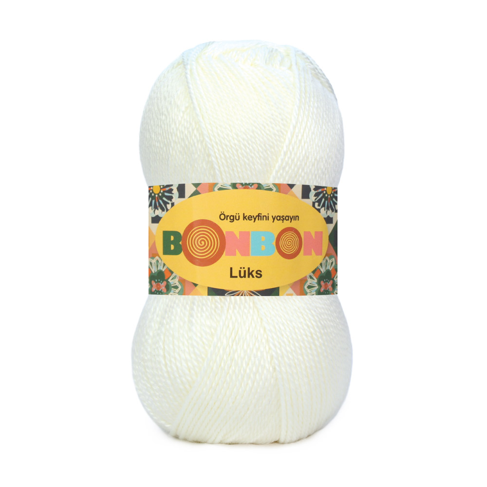 Bonbon Lüks *Ürün İçerikleri: %100 Premium Akrilik *Gramaj: 100 gr *Metraj: 240 m *Mevsim: İlkbahar / Sonbahar / Kış * Şiş No : 3.5 -4.5 * Tığ No :2-3 mm