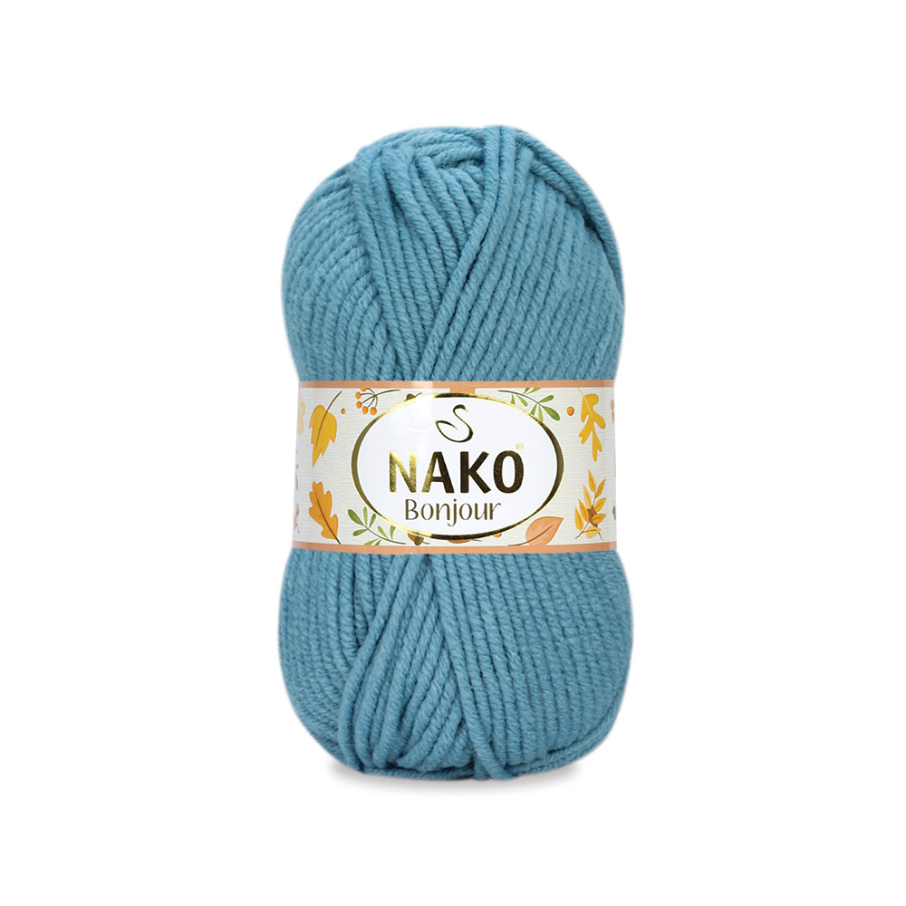 Nako Bonjour 23844 Azur; kazak, hırka, yelek, atkı, bere ve diğer aksesuarlar gibi pek çok farklı örgü projesi için idealdir.