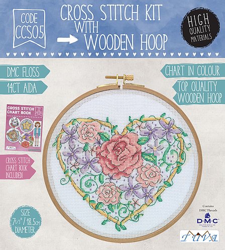 Set, DMC 14 CT AIDA Etamin Kumaşı ve 18.5 cm çapında ahşap vidalı kasnak dahil gereken her şeyi içerir. Şema kitapçığı hobi sanatçılarına 22 farklı motif seçeneği sunar.
