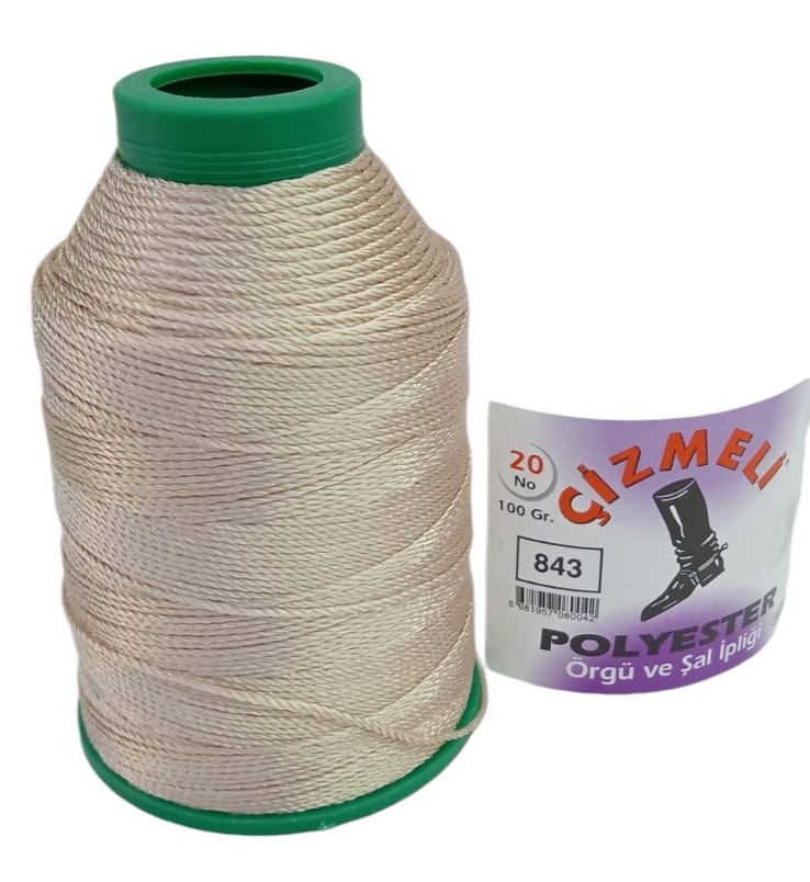 Çizmeli No.20 843 Koyu Vizon Polyester İpliği, polyester malzemenin sağladığı birçok avantaja sahiptir. Öncelikle, polyesterin dayanıklılığı sayesinde iplikleriniz uzun ömürlü olur ve yıpranmaya karşı direnç gösterir. Bu özellik, projelerinizin uzun süre boyunca güzel görünmesini sağlar. Ayrıca, hafif yapısı ile uzun süreli çalışmalarda konfor sunar. Koyu vizon rengi, projelerinize sofistike ve modern bir hava katarken, aynı zamanda birçok diğer renk ile uyumlu bir şekilde kombinlenebilir.