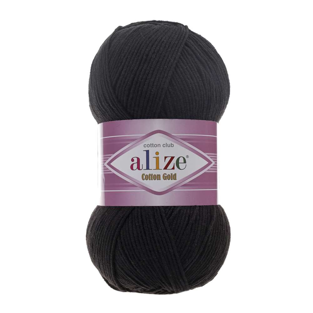 Alize Cotton Gold 60 Siyah, %55 Pamuk ve %45 Akrilikten oluşan bir örgü ipidir. Her bir topu yaklaşık 100 gram ağırlığında olup, uzunluğu ise 330 metredir.