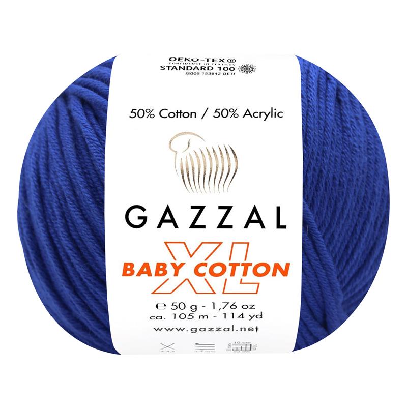 Gazzal Baby Cotton XL 3421 Saks *Ürün İçerikleri: %50 Pamuk %50 Akrilik *Gramaj: 50g *Metraj: 105 m *Mevsim: İlkbahar / Yaz / Sonbahar / Kış * Şiş No : 4 – 4.5 * Tığ No : 3 - 4 *Kullanım Alanları: Bebek giysileri. amigurumi. battaniye. kazak. şapka. patik vb. ürünler *Uyarı: Ekranda gözüken renkler ile gerçek iplik rengi farklılık gösterebilir.