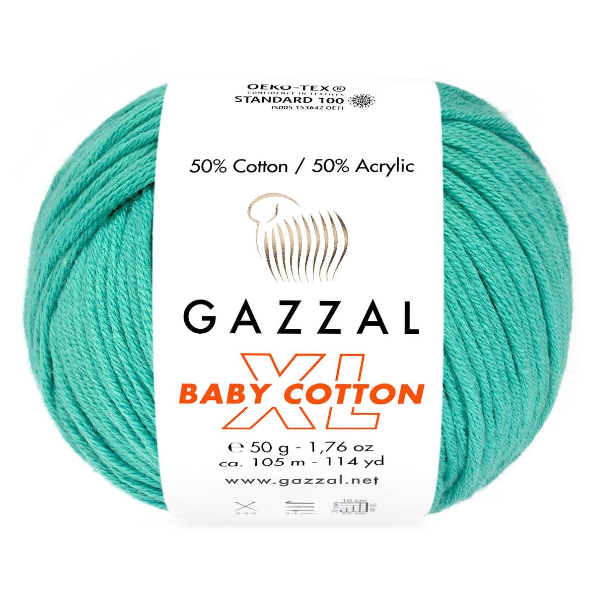 Gazzal Baby Cotton XL 3426 Mint *Ürün İçerikleri: %50 Pamuk %50 Akrilik *Gramaj: 50g *Metraj: 105 m *Mevsim: İlkbahar / Yaz / Sonbahar / Kış * Şiş No : 4 – 4.5 * Tığ No : 3 - 4 *Kullanım Alanları: Bebek giysileri. amigurumi. battaniye. kazak. şapka. patik vb. ürünler *Uyarı: Ekranda gözüken renkler ile gerçek iplik rengi farklılık gösterebilir.