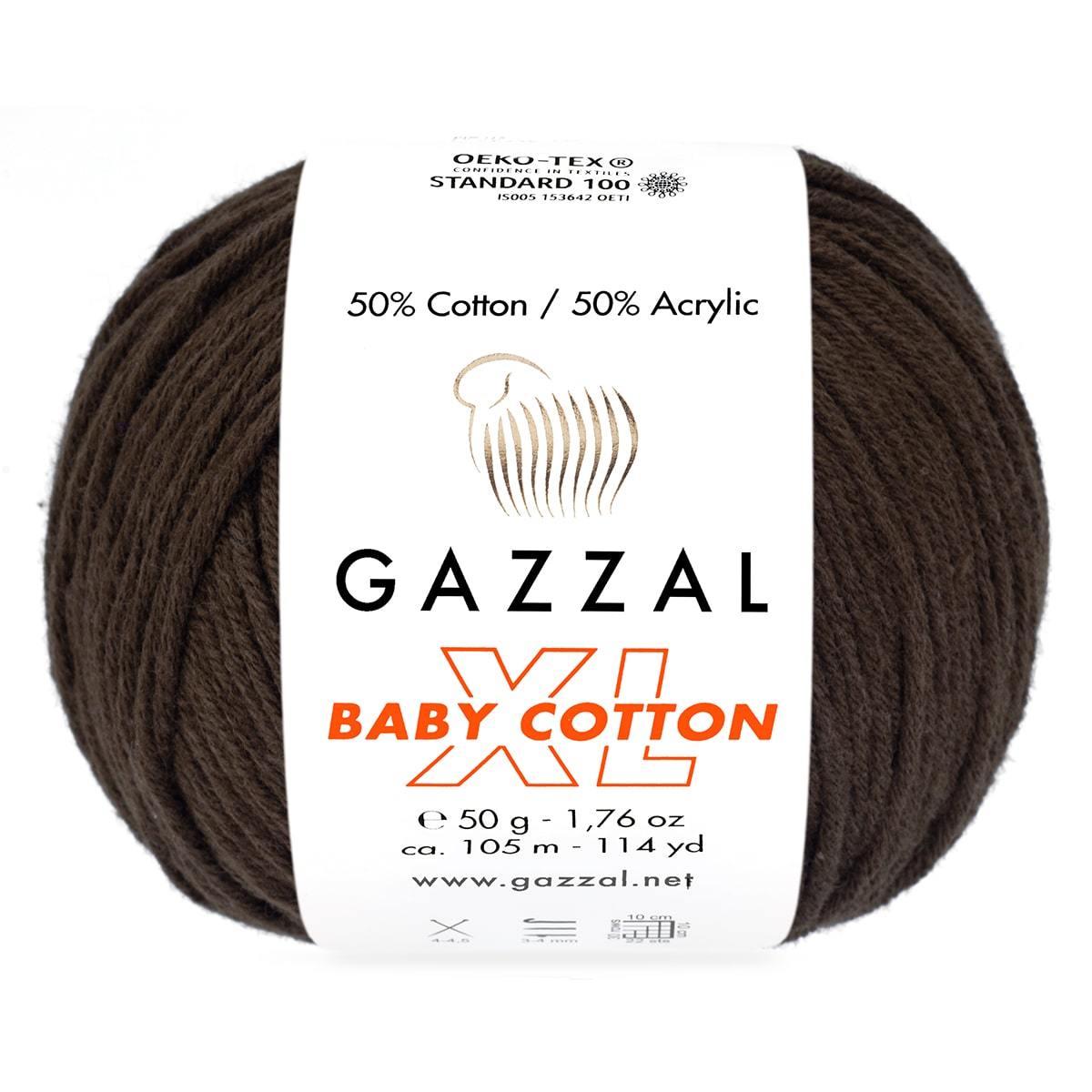 Gazzal Baby Cotton XL 3436 Kahve *Ürün İçerikleri: %50 Pamuk %50 Akrilik *Gramaj: 50g *Metraj: 105 m *Mevsim: İlkbahar / Yaz / Sonbahar / Kış * Şiş No : 4 – 4.5 * Tığ No : 3 - 4 *Kullanım Alanları: Bebek giysileri. amigurumi. battaniye. kazak. şapka. patik vb. ürünler *Uyarı: Ekranda gözüken renkler ile gerçek iplik rengi farklılık gösterebilir.