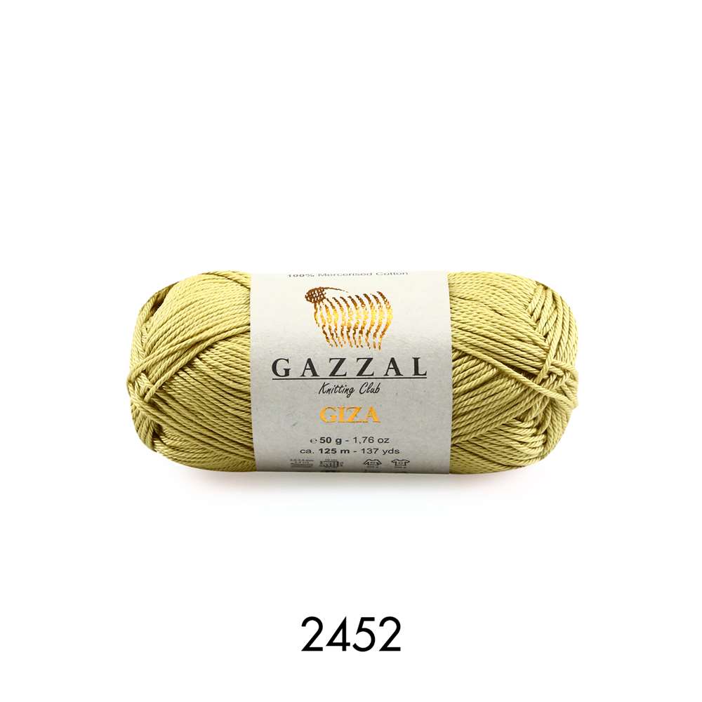 Gazzal Giza 2452 Hardal *Ürün İçerikleri: %100 Merserize Pamuk *Gramaj: 50g *Metraj: 125 m *Mevsim: İlkbahar / Yaz * Şiş No : 3.5 * Tığ No : 2.5 *Kullanım Alanları: Hırka. kazak. şal. bluz. elbise. etek. amigurumi. örgü oyuncak. battaniye. çanta vb. ürünler *Uyarı: Ekranda gözüken renkler ile gerçek iplik rengi farklılık gösterebilir.