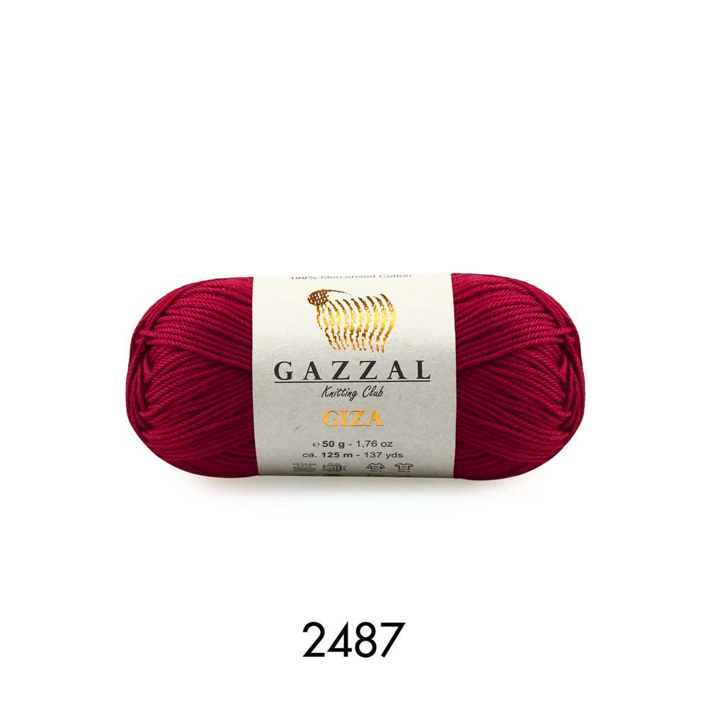 Gazzal Giza 2487 Vişne *Ürün İçerikleri: %100 Merserize Pamuk *Gramaj: 50g *Metraj: 125 m *Mevsim: İlkbahar / Yaz * Şiş No : 3.5 * Tığ No : 2.5 *Kullanım Alanları: Hırka. kazak. şal. bluz. elbise. etek. amigurumi. örgü oyuncak. battaniye. çanta vb. ürünler *Uyarı: Ekranda gözüken renkler ile gerçek iplik rengi farklılık gösterebilir.