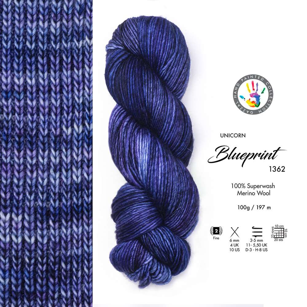 Gazzal Unicorn Elde Boyama 1362 Blueprint 100 gramdır. Seyrek örgüler ve geniş projeler için idealdir.