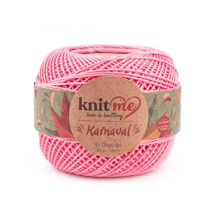 Knit Me Karnaval örgü ipleri tamamen kaliteli ve dayanıklı bir yapıya sahip olan %100 Polyester özelliğine sahiptir. Özgün ve parlak görünümü ile merserize pamuk ipliğine benzer bir estetik sunar.