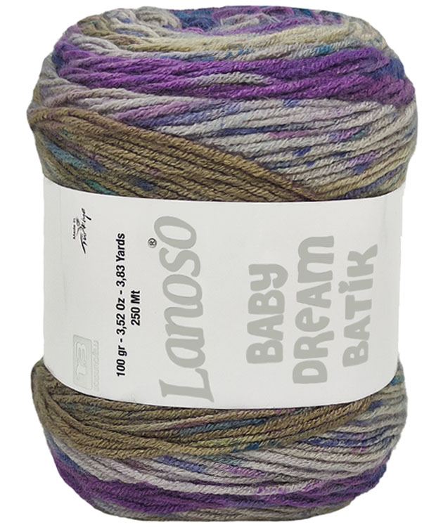 Lanoso Baby Dream Batik 745, %100 antipilling içeriğiyle uzun süreli kullanım sunan bir örgü ipliğidir. 100 gr gramajı ve 250 m metrajı ile çeşitli örgü projelerinde kullanılabilir. Tüylenmeyen yapısı sayesinde hassas projeler ve bebek örgüleri için idealdir.