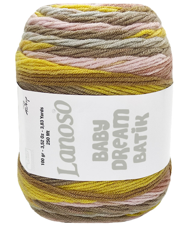 Lanoso Baby Dream Batik 750, %100 antipilling içeriği ile uzun süre tüylenmeyen ve dayanıklı bir örgü ipliğidir. 100 gr gramajı ve 250 m metrajı sayesinde geniş bir kullanım alanı sunar. Bu iplik, bebek örgülerinden yetişkin aksesuarlarına kadar her türlü örgü projenizde rahatlıkla tercih edilebilir.