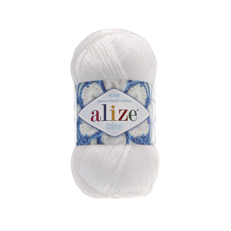 Alize Miss 55 Beyaz 50 gram ağırlığında ve 55 metre uzunluğunda olup, projeleriniz için ideal bir seçenektir.