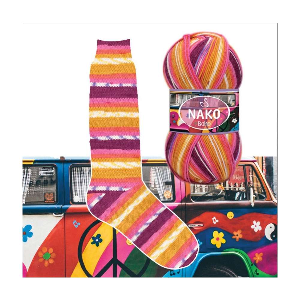 Nako Boho Concept 82259 Camper Dreamin, sıcak ve rahat çoraplar örmek için harika bir ipliktir. İşlenmesi kolay olan bu iplik, dayanıklı ve uzun süreli kullanım için uygundur.