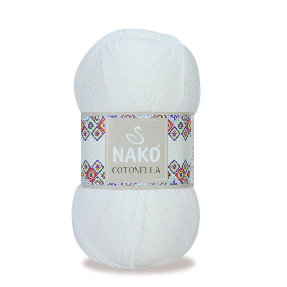 Nako Cotonella 208 Beyaz, % 30 Poliamid ve % 70 premium mikro akrilikten üretilmiştir. Gramları 100 gr ve metrajı 310 m olan bu iplik, özellikle ilkbahar ve yaz mevsimlerine uygundur. Poliamid ve mikro akrilik karışımı sayesinde dayanıklılık, esneme kabiliyeti ve renk canlılığı sağlar.