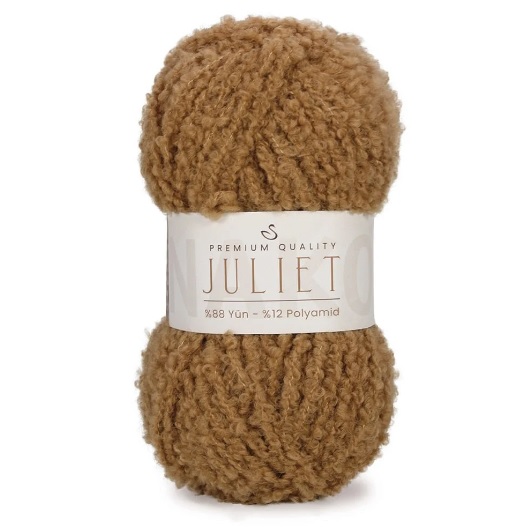 Nako Juliet 3418 Karamel rengi el örgü ipi, doğal ve sıcak tonuyla projelerinize zarafet katar. Kalın buklet dokusuyla, ekstra iplik karışımına gerek kalmadan şık ve sofistike örgüler yapmanıza olanak tanır.