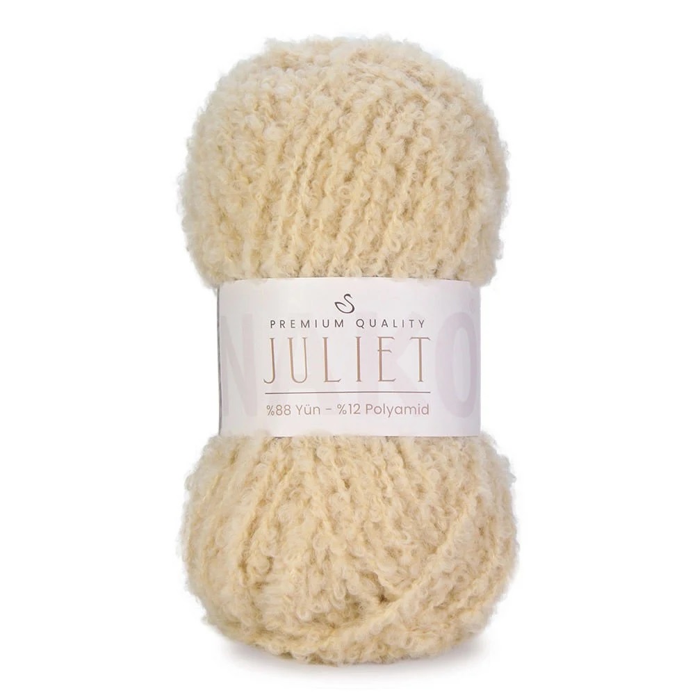 Nako Juliet kalın dokulu buklet yapısıyla sayesinde içine iplik karıştırmanıza gerek kalmadan düz örgü ile yapılan modellerde bile şık bir görünüm sağlar. Hırka,kazak,yelek,şal,battaniye,atkı,şapka,amigurumi gibi tüm örgü projelerinizde kullanabilirsiniz.