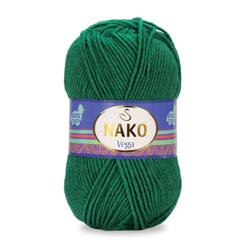 Nako Vega 13871, yüzde 100 akrilikten yapılmış ve 100 gramlık bir yumak halinde gelir. Her yumakta yaklaşık 210 metre ip bulunur.