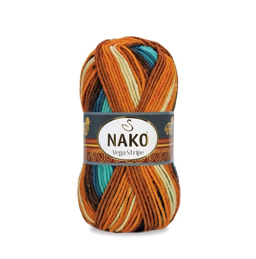 Nako Vega Stripe 83601, premium kalite yün ve akrilik karışımından üretilen pek özel bir ip çeşididir. İhtiyaç duyulan örgü işlerinde ilk tercih olan bu ürün, kıyafet ve aksesuar yapımında tercih edilen bir markadır.