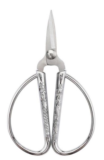 Retro Geniş Saplı Desenli Makas Gümüş