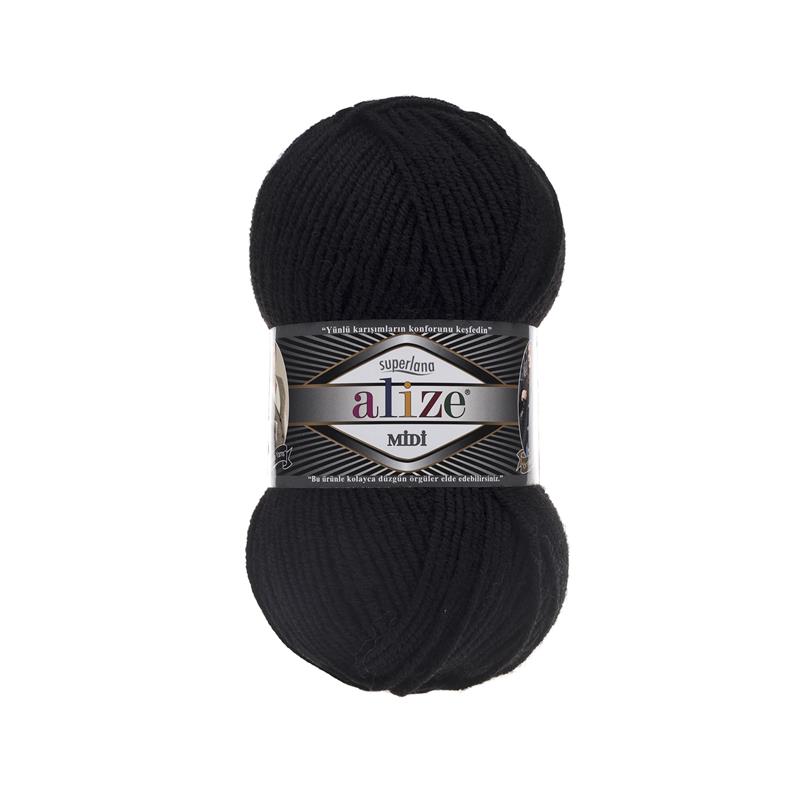 Alize Süperlana Midi 60 Siyah, hırka, kazak, atkı, bere, yelek, bluz vb. örgülerinizde farklılık yaratmak için idealdir. Bu seri, tüm örgü modellerinde güvenle tercih edilebilir.
