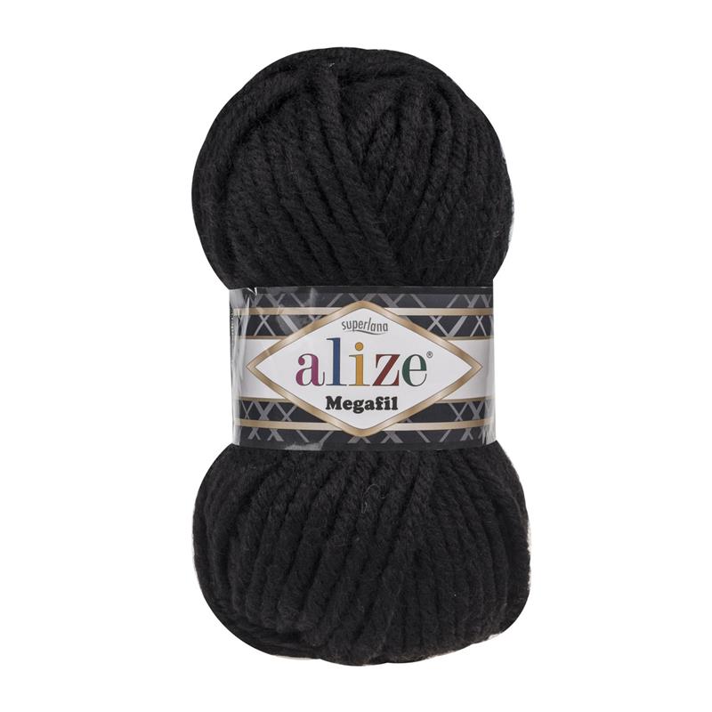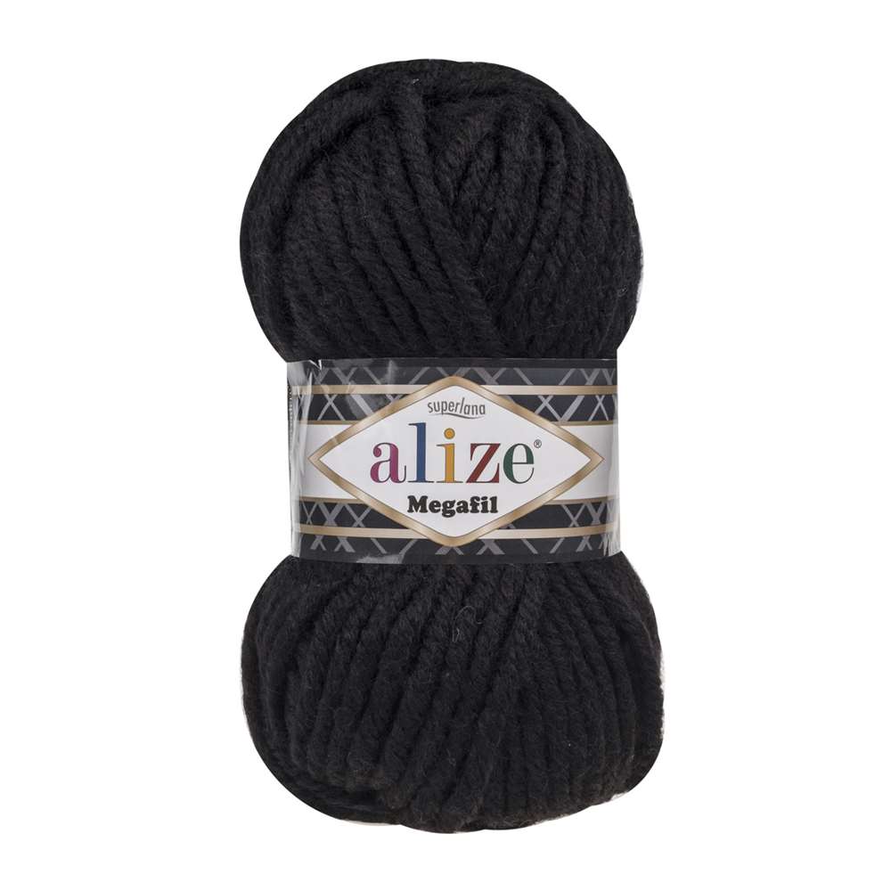 Alize Superlana Megafil 60 Siyah, özellikle kışlık örgü kıyafetlerinde kullanılabilir. Bebek kazakları, hırkalar, atkılar, bereler gibi örgü ürünlerin yapımında idealdir.