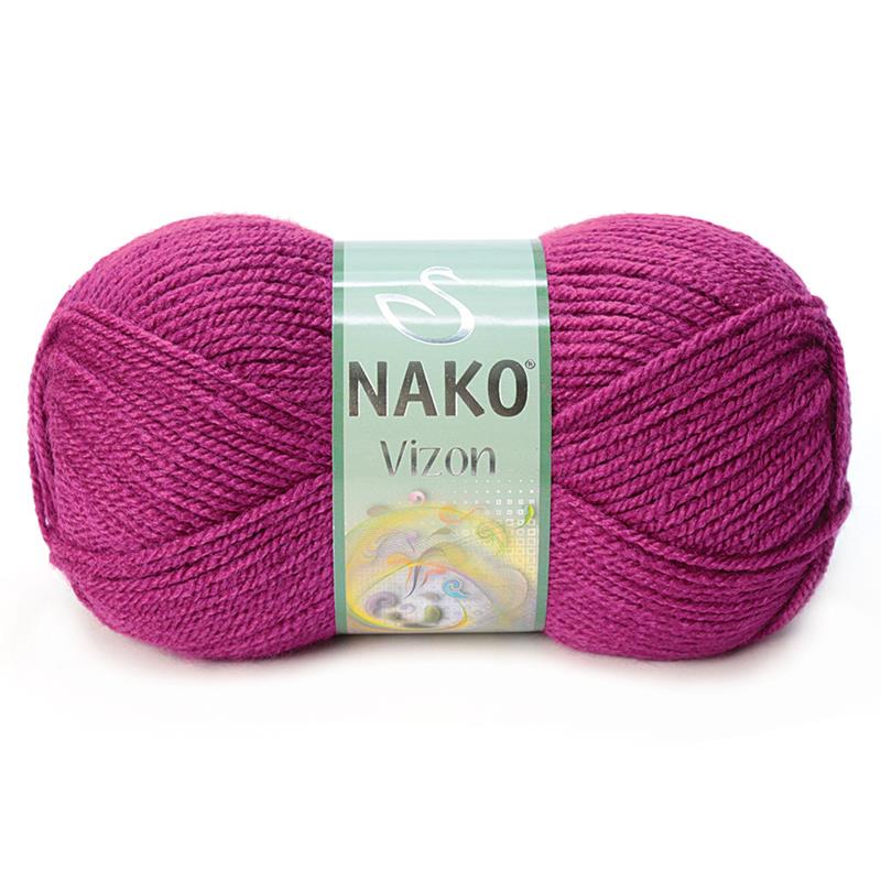 Bir skein (iplik topu) Nako Vizon 6964 Fuşya, 100 gram ağırlındadır ve yaklaşık 195 metre boydadır. İster bir atkı, ister bir hırka örün, bu örgü ipliği geniş bir yelpazede projeler için idealdir.